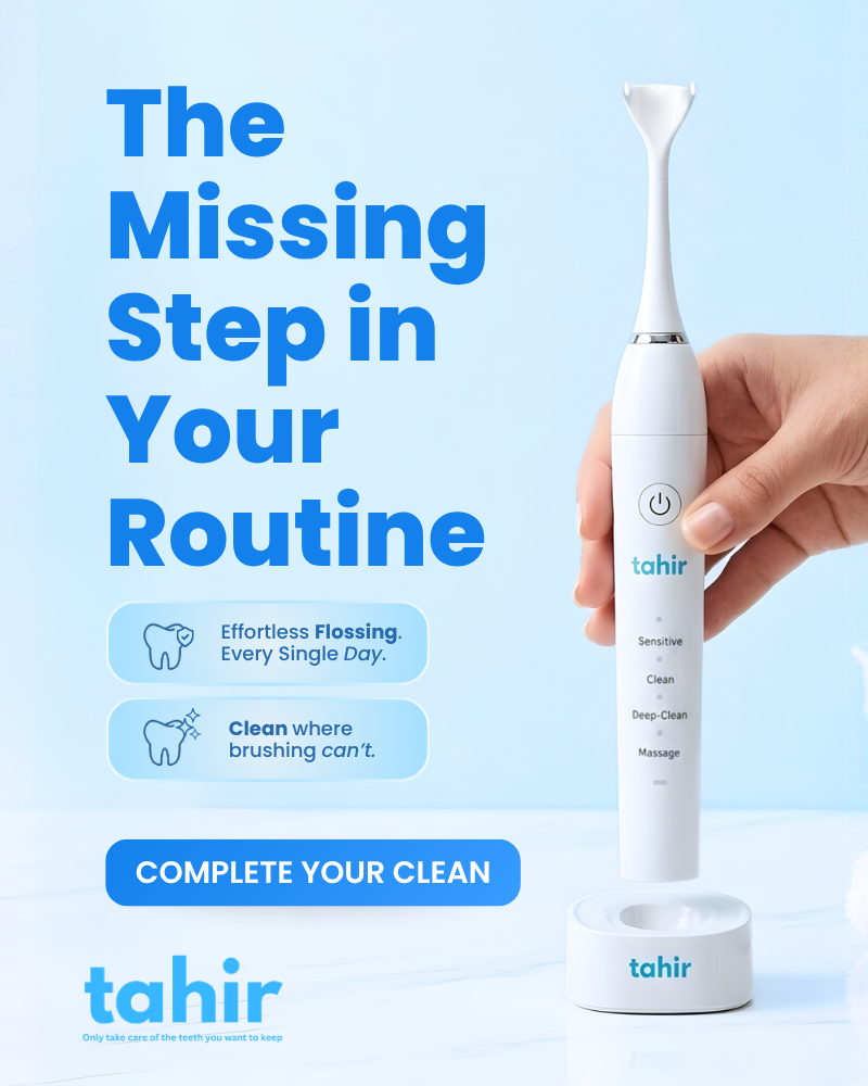 Watch how the Tahir Electric Flosser makes daily flossing effortless - no mess, no fuss, just a healthier smile.